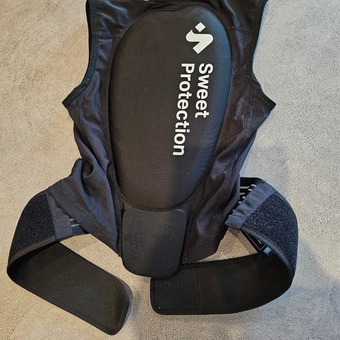 Lengde på ryggplaten er ca. 40 cm. Beskytteren er hel, pen og fullt brukbar. Selges fordi junior har vokst / strukket seg og trenger større størrelse. Brukeren har vært veldig fornøyd med denne.