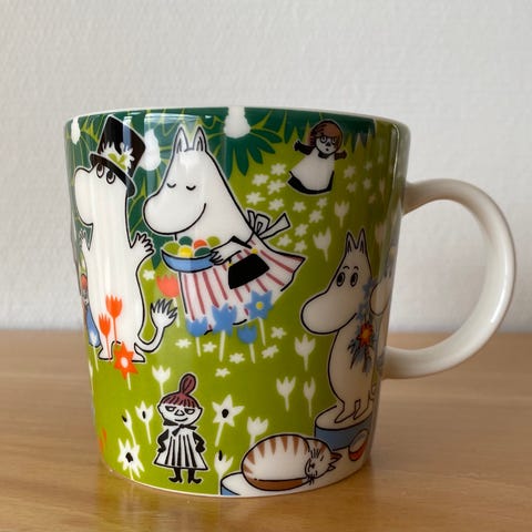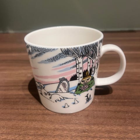 Arabia Mummikopp «Julehilsen», som ble produsert i perioden 1997-2002 selges. Koppen er 3dl.