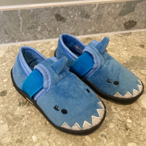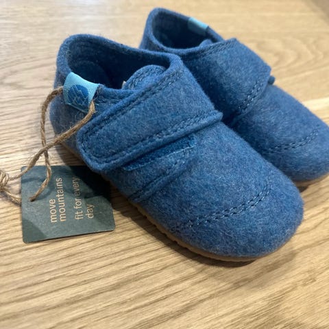 Tøffel i filt med borrelås-lukning.