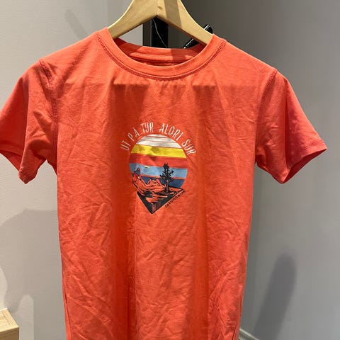 Barne T skjorte Brukt 1 gang Jotunheim med teksten ,»jeg trives aller best i Bergen «(oransje rosa fersken farge )