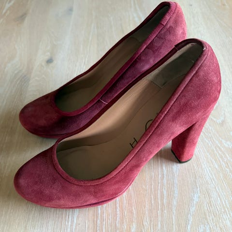 Pent brukte, grønne pumps i semsket skinn selges. Lite brukt.