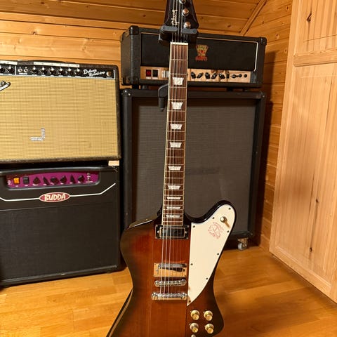 Selger her en helt fantastisk Gibson SG standard 61 kjøpt i 2025. Kvaliyetskontrollen til Gibson har i dette tilfellet vært eksepsjonelt god, spiller som smør som er en god klisje å bruke på denne. I tillegg har denne fått Gibson custombuckere, som man finner i mange av gibsons custom shop-modeller. (De koster også deretter) med andre ord får man her vintage PAF-golyd i bøtter og spann, svært dynamiske på anslaget. Originalkasse, som forøvrig ser veldig luksus ut:-), og kassegodt følger selvsagt med. Veier svært komfortable 2,8 kg!