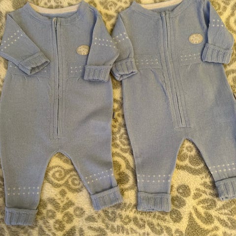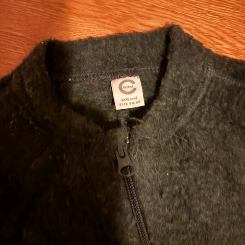 H&M tynn ulldress i blå farge, størrelse 50, unisex. Laget av ullmateriale som gir varme og komfort. Glidelås foran.