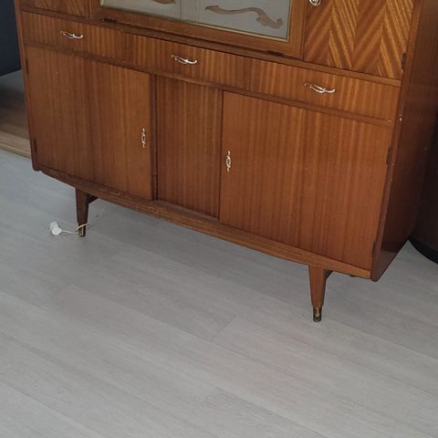 Times, av Torbjørn Afdal, Bruksbo Tegnekontor for Mellemstrands Trevareindustri rundt 1965. Vi kjøpte barskapet på Blomqvist Auksjonshus i 2023.