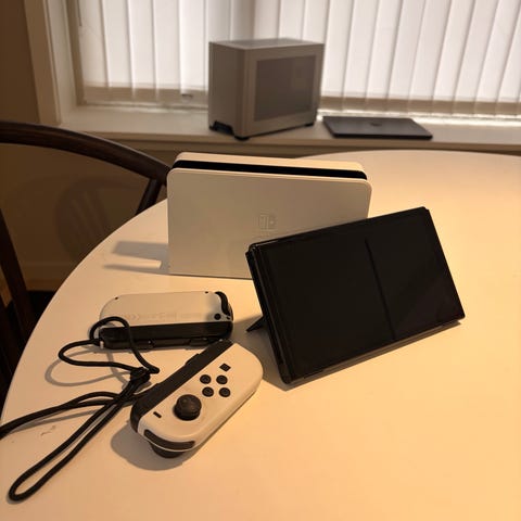 Følger med docking og medfølgende fester for kontrollene, finner ikke hdmi-kabelen.