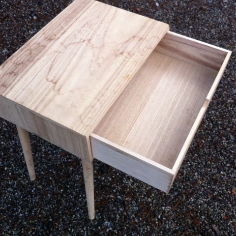 Bordet har et tidløst og rustikt uttrykk, med naturlig trestruktur og avrundede kanter. Gir god oppbevaringsplass til bøker, blader, ladeutstyr eller småting.