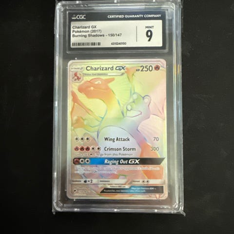 Charizard gx 150/147 pokemon kort fra burning shadows. Kortet er i svært dårlig stand. Ønsker bud. Tar også trades.