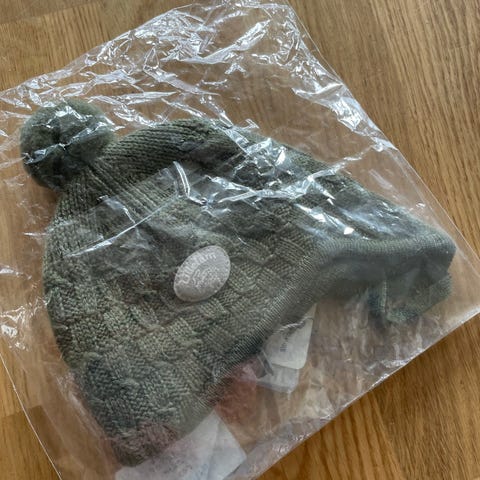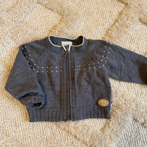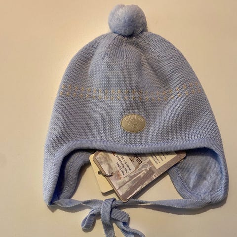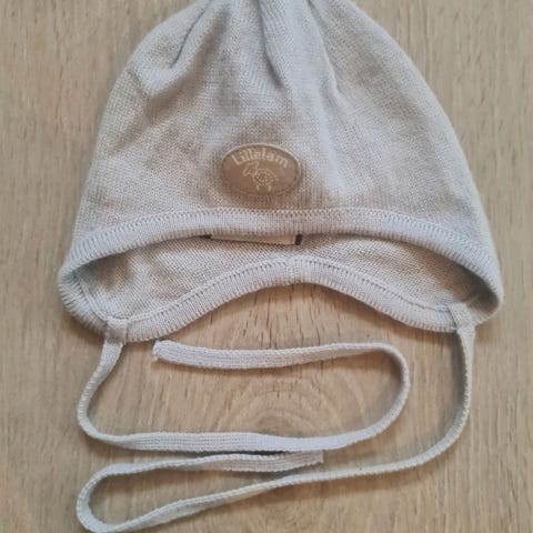 Lillelam babylue i ull, grå farge, størrelse 36-38. Luen er laget av ullmateriale og passer til både gutter og jenter i denne størrelsen.