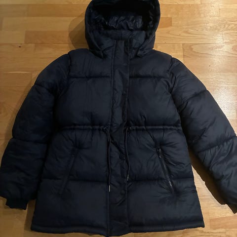 Ubrukt HM vinterjakke i størrelse 152. Jakken er rød/burgunder, har hette med fuskepels og glidelåslommer. Den er vannavstøtende, vindtett og puster.