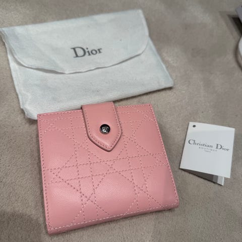 CHRISTIAN DIOR «DIORISSIMO» konvoluttlommebok i kornet kalveskinn