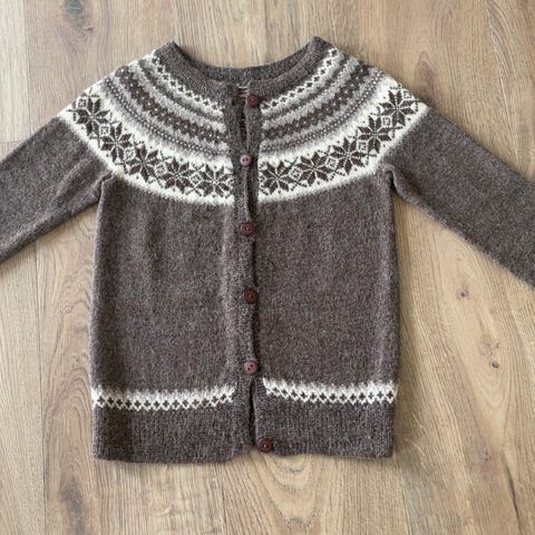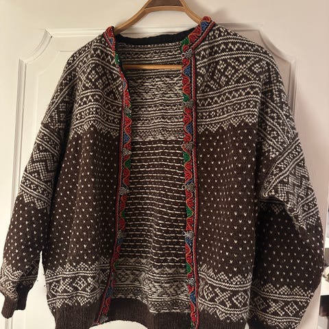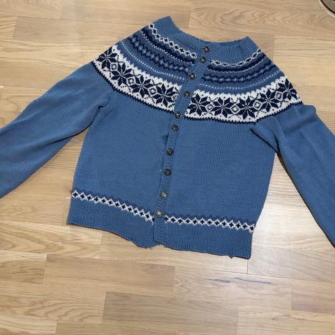 Meget pent hjemmestrikket "Ingrid Alexandra kofte" i str medium/large.