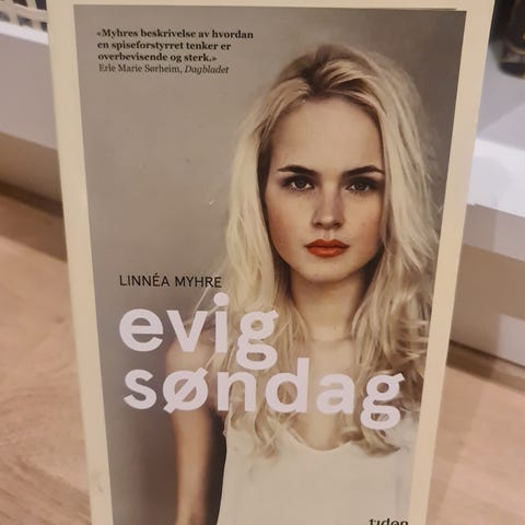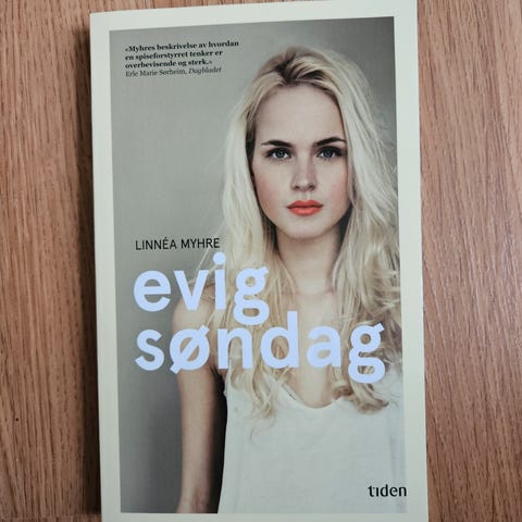 Linnéa Myhre Evig søndag bok. Utgitt i 2012 av Tiden Norsk Forlag, Oslo. 111 sider, trykt på Sabon papir. ISBN 978-82-10-02568-2. Boken inneholder tekst på norsk og er en utgave i 4. opplag.