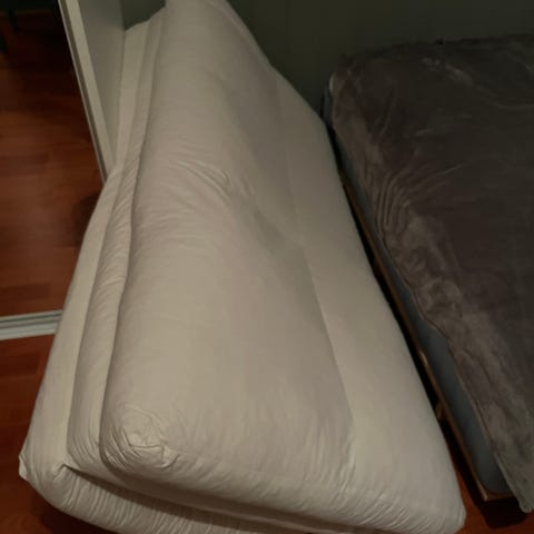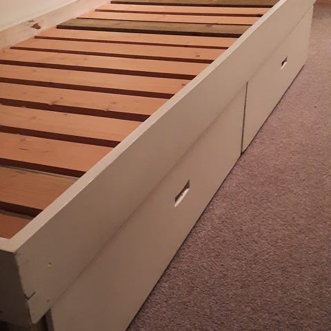 Pent brukt kontinentalseng gis bort. Sengen står på en tre-ramme. Følger ikke med overmadrass.