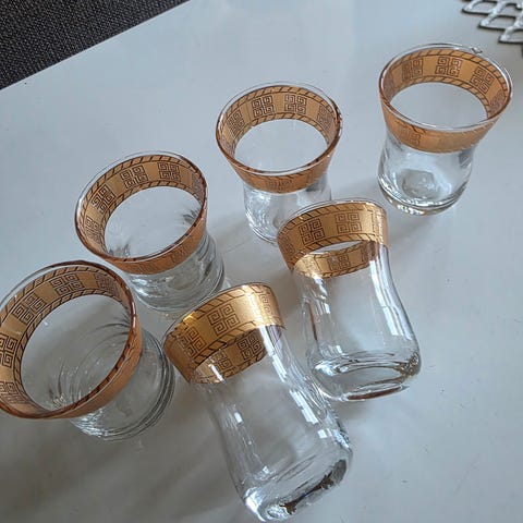 To kanner i rustfritt stål med lokk og håndtak, 6 glass, 4 store, 2 litt mindre. Alt i beget god stand.