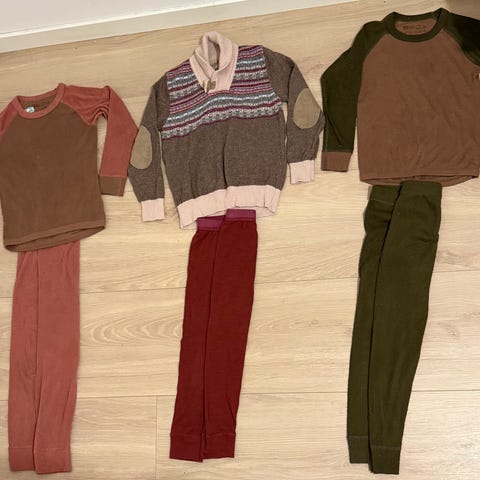 Bjørnislue i jersey med refleks-print, pannebånd fra Reflex, hjemmestrikka ullsokker - passer str 2-3 år.