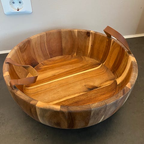 1 serveringsbrett i akasietre med plass til knivene
