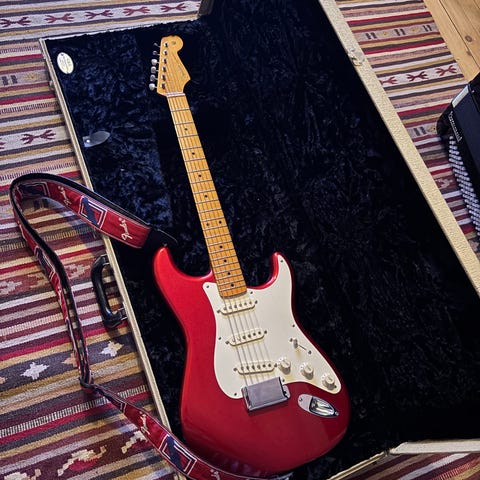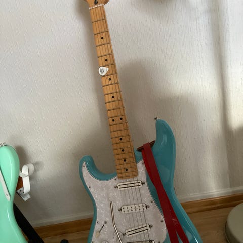 Selger en Ritchie Blackmore Stratocaster med scalloped gripebrett i rosentre, Olympic White i forbindelse med flytting til mindre bolig.