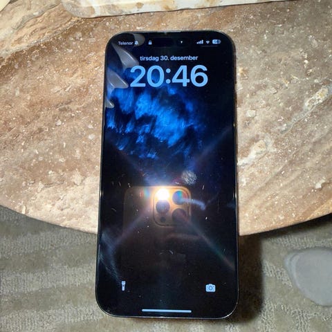 Har kun vært brukt med skjermbeskytter og deksel. Ny skjermbeskytter er satt på november 2025.