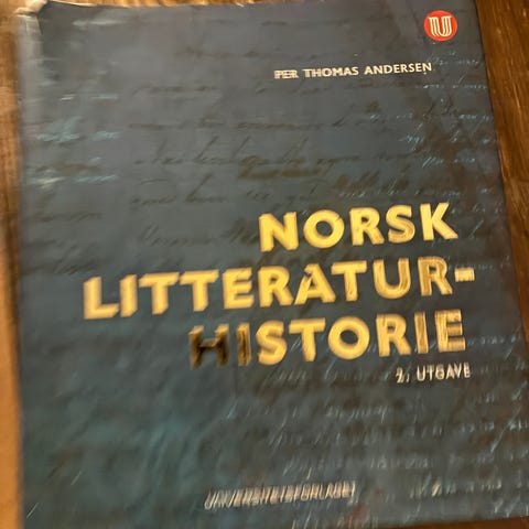 Norsk Litteraturhistorie (2012, 2. utgave) av Per Thomas Andersen. Noen markeringer i boken.