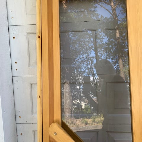 Tylo DGB badstudør med karm i furu. Døren har glassfelt og er designet for bruk i badstue. Materialet er furu, og døren leveres med karm.