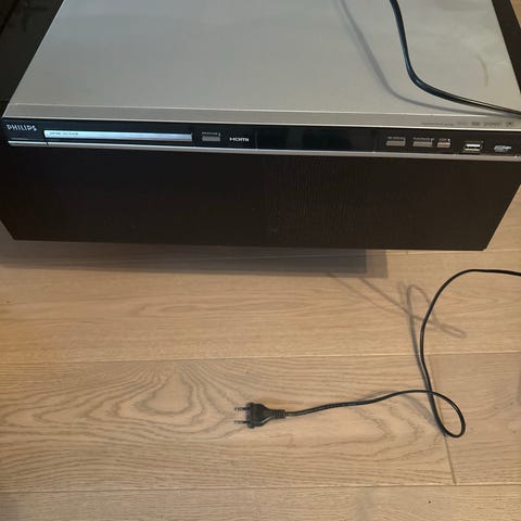 Philips DVD-spiller med HDMI-inngang, og SCART-tilkobling og USB-inngang.