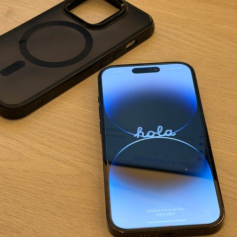 Apple iPhone 14 Pro med 256 GB lagringsplass i fargen Midnight Purple selges.