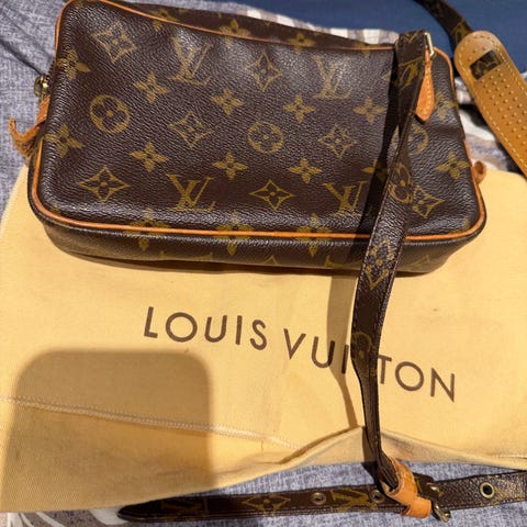 Louis Vuitton ryggsekk i lær for unisex. Sekken har klassisk monogrammønster og lærdetaljer. Den har en frontlomme med glidelås og justerbare skulderstropper. Innvendig er det et rom med stofffôr og festering for nøkler eller annet tilbehør. Byttet lær rem på Louis Vuitton i Oslo .