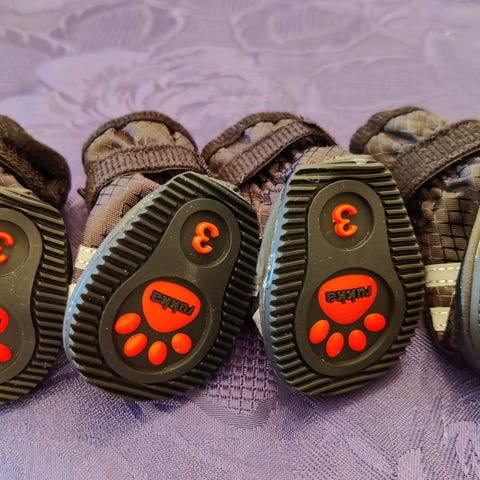 Vintersko med gripesåle. Skoene er i str XL, potelengde 8,5 cm. Skoene er svært lite brukt da dette var for stort for vår hund. Kjøpt for kr 649. Kan sendes med fix ferdig på kjøpers regning