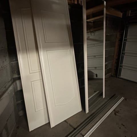 Standard hvit skyvedør laget av hult tre. Passer for innendørs bruk. Inkluderer ramme og skinne. Noe listverk følger med