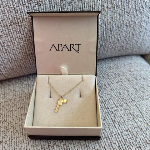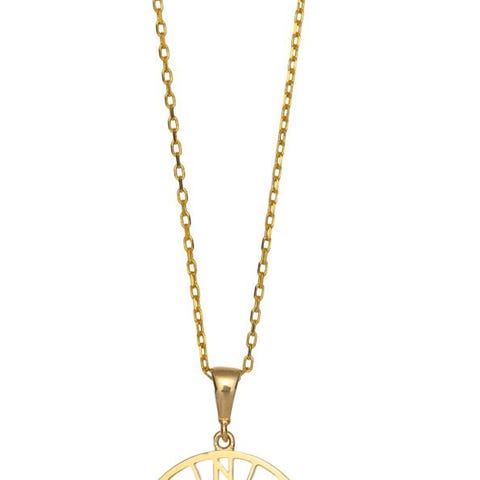 Anheng i 585 (14 karat) gult gull med stilrent design utformet som et kompass. Anhenget er 17 mm høyt og 12 mm bredt.