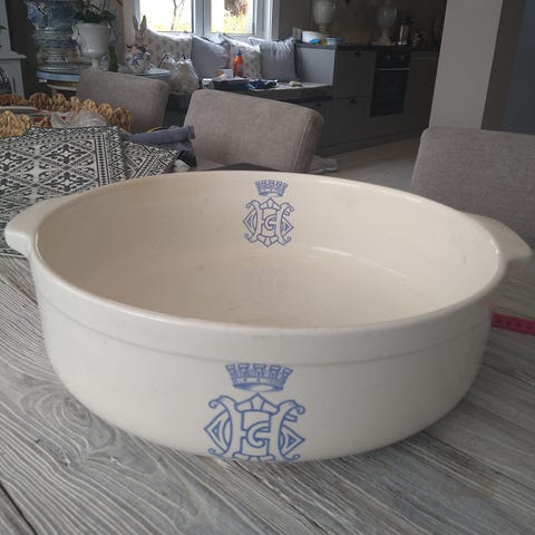 Selger vaskefat fra Egersund fayancefabrikk modellen heter Rjukan.