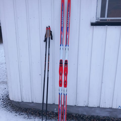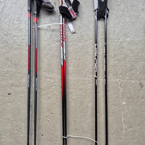 Pent brukte ski i lengde 110cm med rottefella binding og staver i 90 cm høyde fra swix. Må hentes. Selges 250 kr.