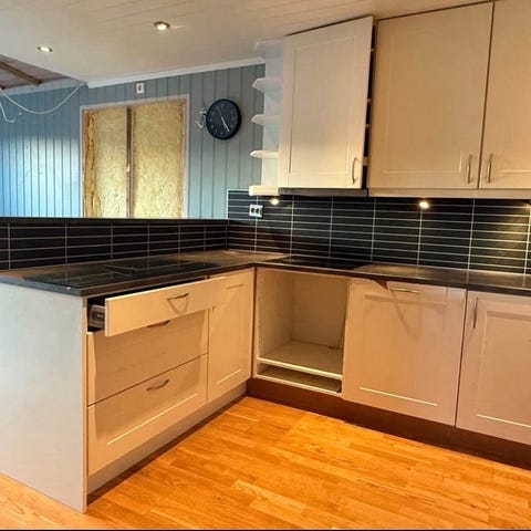 Tidligere eier har malt kjøkkenet 2 ganger ufullstendig.