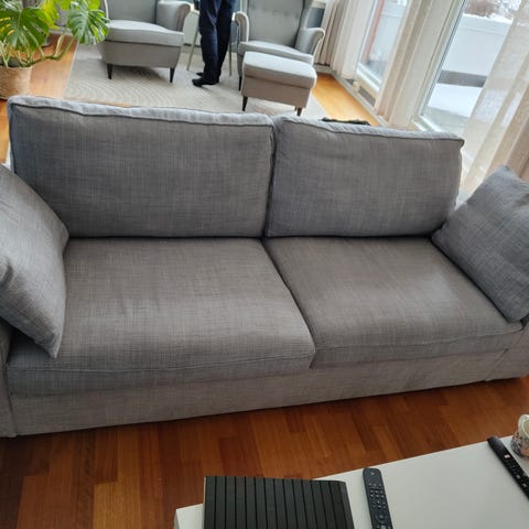 Veldig pent brukt grå IKEA Kivik-sofa. Alle trekkene på sofaen er avtakbare og kan vaskes. Sofaen er veldig godt brukt og er i ganske god stand nå.