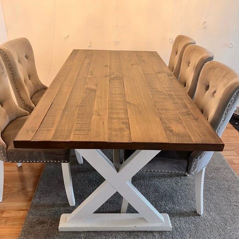 Legger ut for å sjekke interessen, rundt bord og fire stoler kjøpt for finn for en stund tilbake. Pent brukt, noen bruksmerker, men ikke av betydning.
