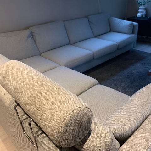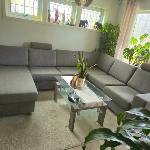 Kjøpt ny i første uke i desember, men ble for stor. Farge Antracit. Sjeselong på venstre side, åpen ende på høyre side. Lengde 285 cm, åpen ende 200 cm, sjeselong 140 cm, dybde puter inkl. rygg 85 cm, høyde 90 cm, sittehøyde 49 cm. Kvittering medfølger. Må hentes.