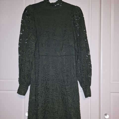 Lekker marineblå blondekjole fra Ellos i strl 52. V-hals foran. Lukking med glidelås bak. Brukt 1 gang