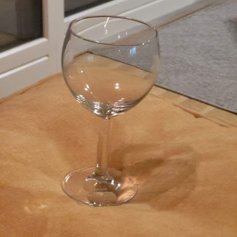 To pakker med vinglass som vi har brukt i barnedåp to ganger, ellers stått pent oppbevart i boksene de kom i.
