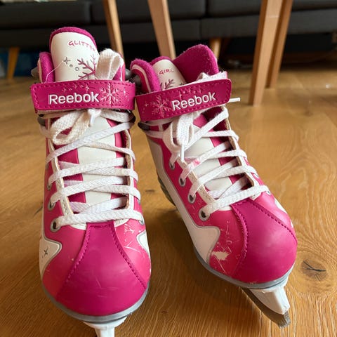 Reebok barn skøyter i størrelse 31 med hvit og rosa farge.