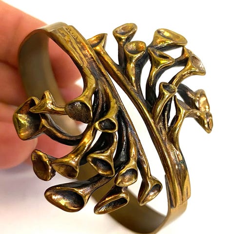 Vakkert brutalist cuff armbånd i bronze / messing med ekte karneol stein vurderes solgt.