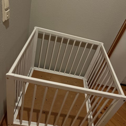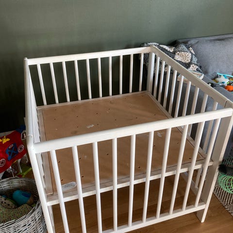 Følger med madrass/kantbeskytter om ønskelig. Denne er det et lite hull i, men dette merkes ikke for bruken.