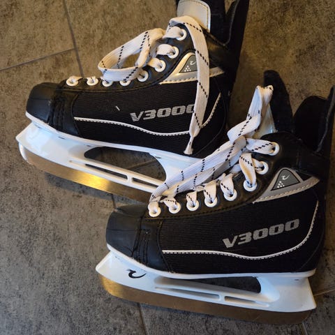 Solide og komfortable ishockeyskøyter for barn. V3000-skøytene er svarte, stilrene og godt egnet både for nybegynnere og barn som allerede liker fart og spill på isen. De gir god støtte rundt ankelen og sitter behagelig på foten, slik at barnet får en trygg og morsom opplevelse på isen.
