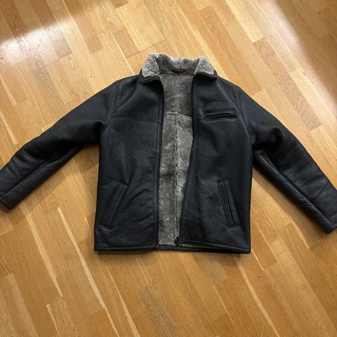 Godt brukt jakke. Den er av god kvalitet og tykt skinn og varmer i mange år fremover