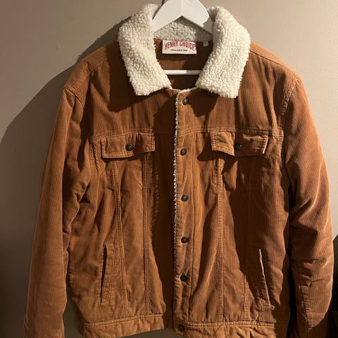 Selger en helt ny og ubrukt cord trucker-jakke fra Henry Choice i fargen Brun / Tobacco Brown.