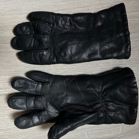 Pent brukte skinnhansker i størrelse 7,5. gode å ha på seg. Kan være småriper i skinnet, men kan ikke se noen spesielle skader på dem.