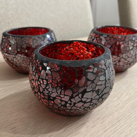 To identiske lysestaker i metall med masse bling fra strassstein - perfekt til telys. Sølvfarget og festlig, super til juletid, festbord eller som pynt på kommoden. Pent brukt, noe bruksmerker😊