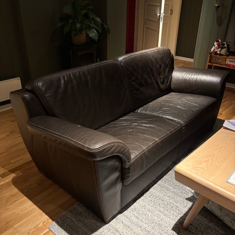 Selger pent brukt skinnsofa i god stand uten skader. Normal bruksslitasje.