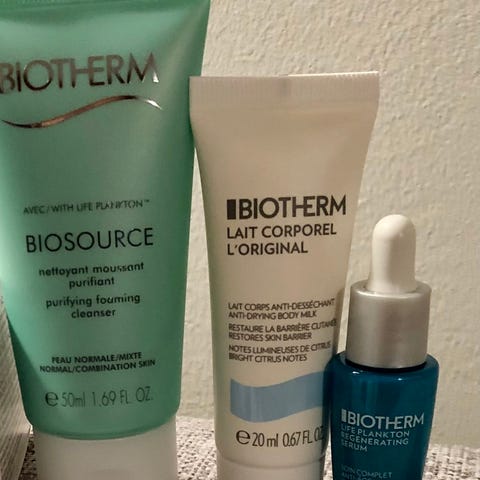 Selger et flott sett med 7 uåpnede Biotherm-produkter – perfekte reisestørrelser, test-kit eller som gave 🎁