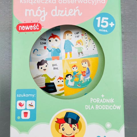 Omslaget har et puslespillmønster med en utskjæring for et bilde.