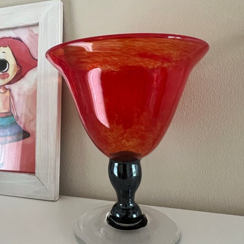 Nydelig håndlagede glass fra Polen, laget av en kunsthåndverker. Bare stått i et skap og aldri brukt. Dekorativ og fin farge på glassene. Selges samlet eller enkeltvis. Kr 350 pr. stk, kr 700 for begge.